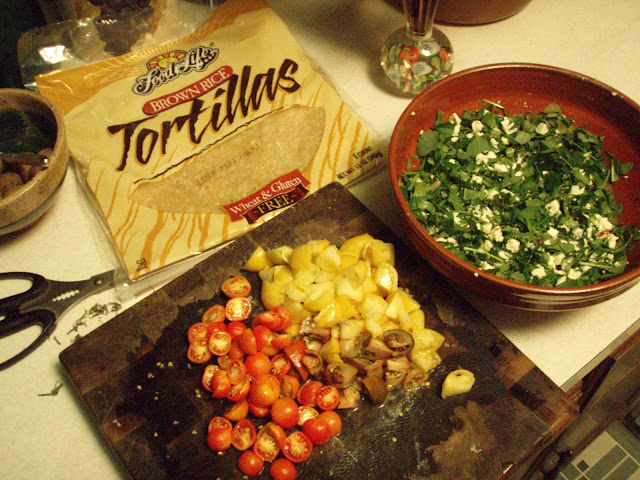 Mix all the ingredients and top a tortilla with them (use half the ingredients for each of two tortillas). I like to use the sprouted grain, brown rice tortillas from ‘Food for Life,’ since sprouted grains are easier to digest and better for you.